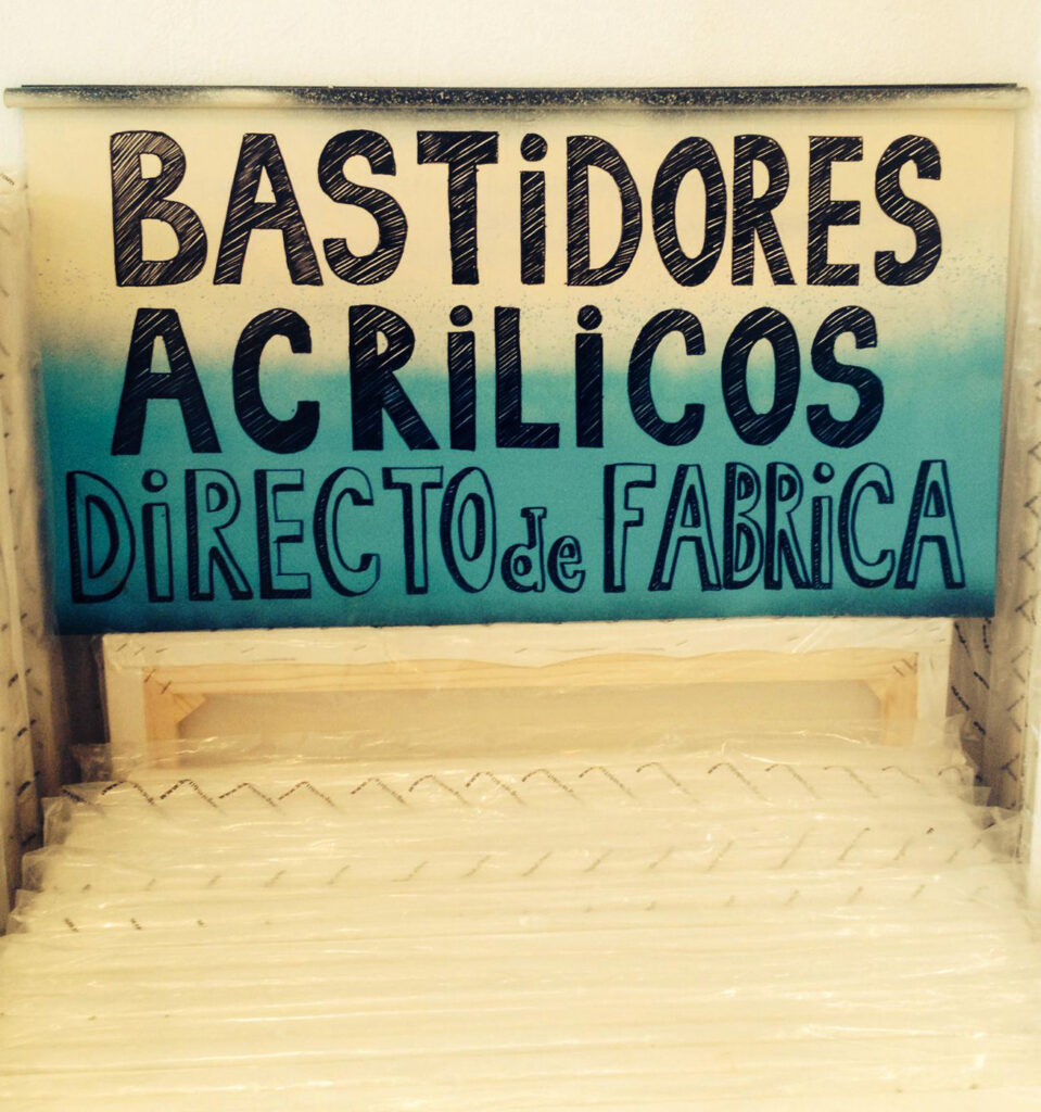 Fabricantes conCorazón Artístico Más de 15 años fabricando insumos de arte.Formatos ilimitados, calidad profesional. VER LISTADO DE PRECIOS CHATEA CON NOSOTROS Tenemos en stock más de 50 medidas compuestas por dos formatos de bastidores: clásico y caja.El clásico es un bastidor de 2 cm de espesor mientras que el caja es de 4,5 cm. Fabricamos bastidores redondos de 20, 30, 40 y 50 cm. de diámetro.Todos ellos con la misma calidad de tela y engrampado siempre por detrás. Realizamos envios en CABA y Gran Buenos Aires Precios Bastidores Promos Packs por 10 unidades 18x24 cm. (x10) $31.500 20x20 cm. (x10) $36.500 24x30 cm. (x10) $41.500 30x30 cm. (x10) $47.000 30x40 cm. (x10) $59.000 40x50 cm. (x10) $85.000 40x60 cm. (x10) $95.000 50x60 cm. (x10) $119.000 50x70 cm. (x10) $133.000 DESCARGAR LISTADO COMPLETO Varios Tela (metro)$18500AtrilesDe pie = $34000Mesa = $13700Acrílicos (200 cc.)Unidad = $119003 unidades = $27000Kilo = $41000Gesso (200 cc.)Unidad = $8500Kilo = $33000 Excelentes productos e inmejorable atención.Muy buenos precios” Alcides HolmGoogle Reviews Historias Varias Qué opinan nuestros clientes. Narell J. GamboaEstoy super contenta con los bastidores! Quería esperar a probarlos para decirles qué me habían parecido.Está bien tirante la tela y buena imprimación 🙌🏽 LEER RESEÑA Karina Castro AguirreMuy lindos bastidores. Bien armados y muy linda tensión. Compramos 3 medidas.El gesso muy lindo con la textura justa. La chica que nos atendió fue una divina. LEER RESEÑA Sabrina SustExcelente atención! Los acrílicos tienen una calidad superior a las marcas comerciales conocidas porque cubren y fluyen muy bien sobre la tela.Son realmente MUY recomendables. LEER RESEÑA LEER TODAS LAS RESEÑAS